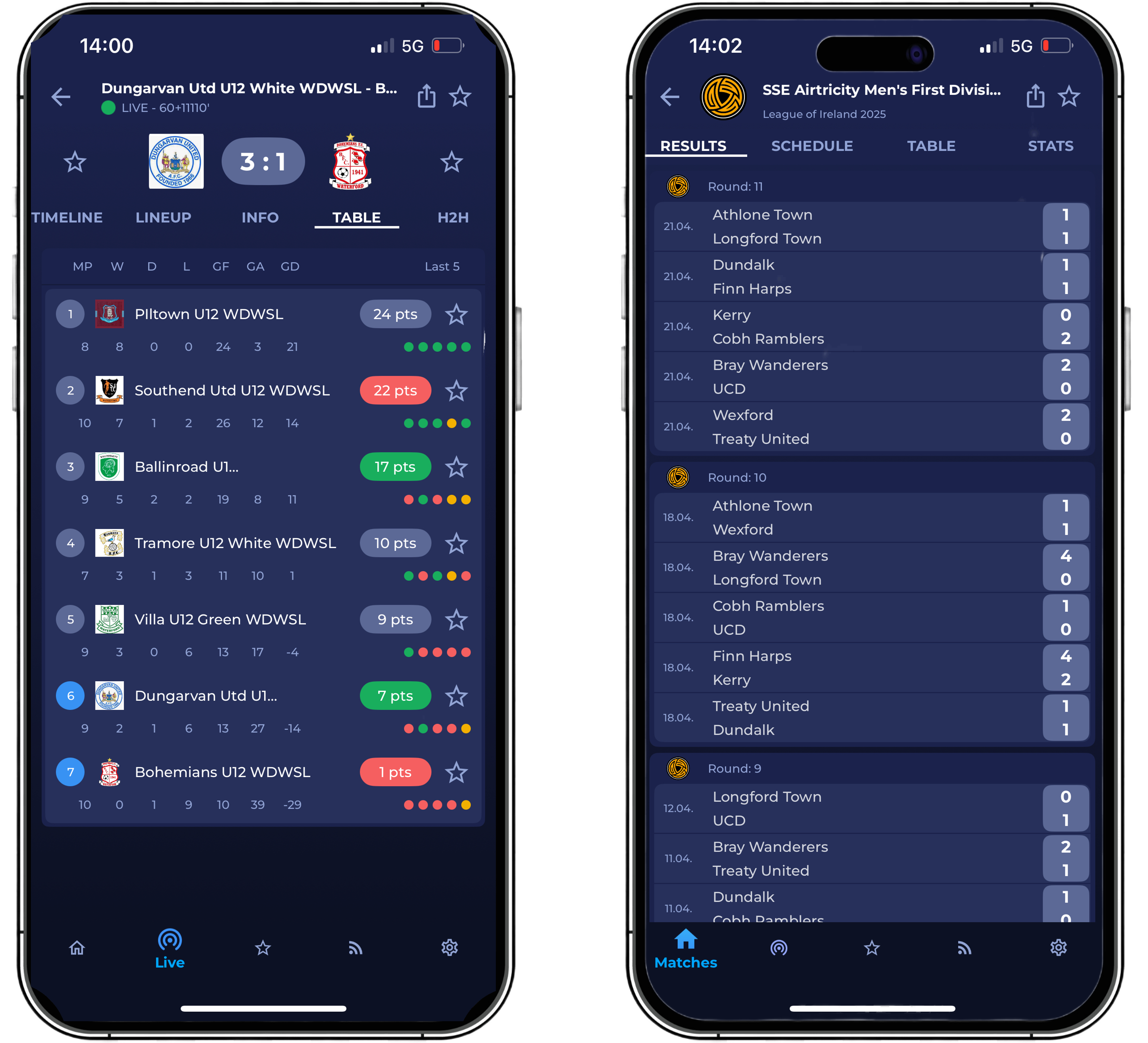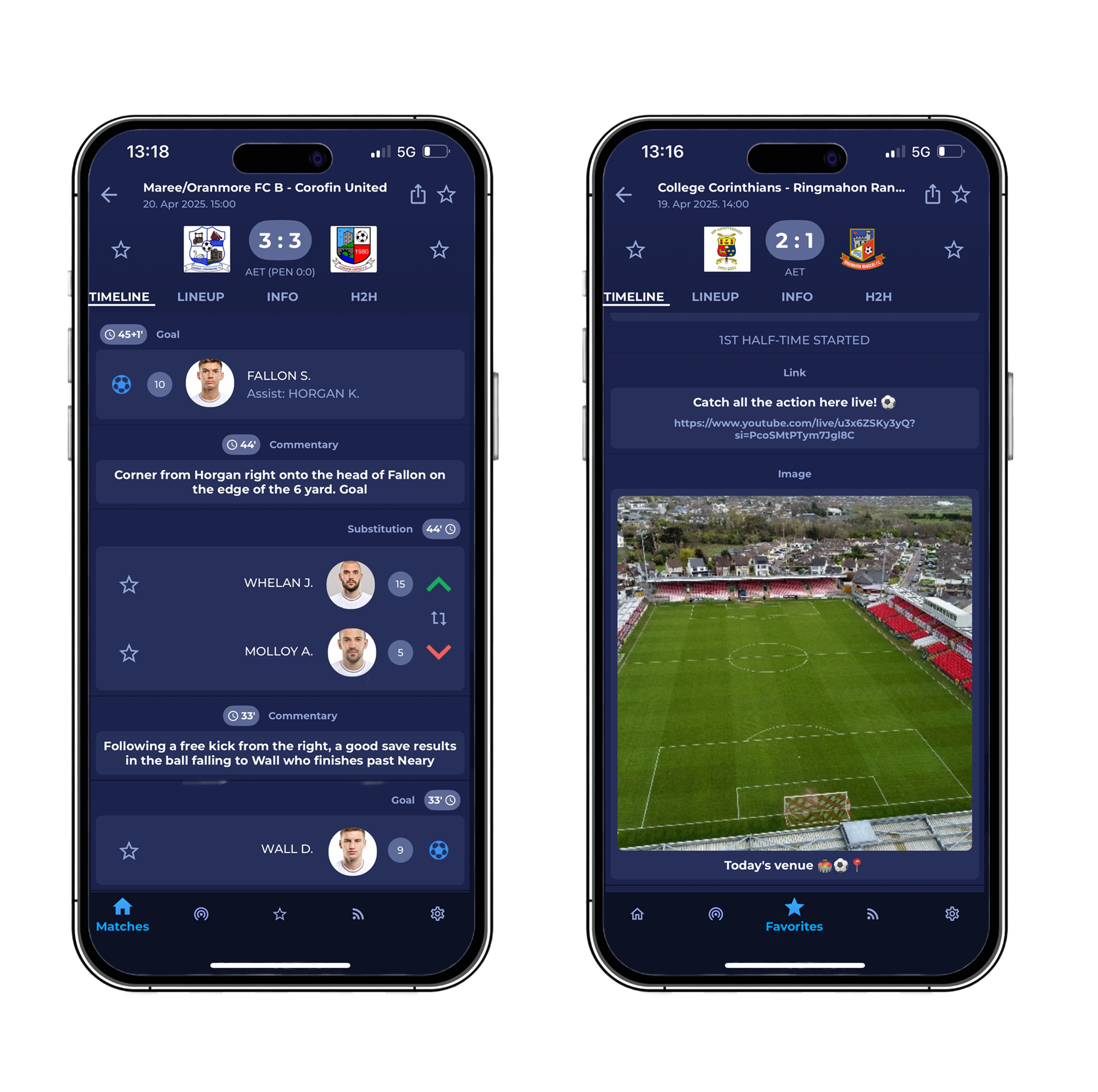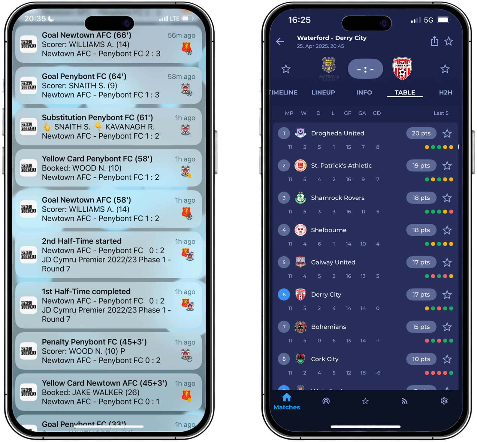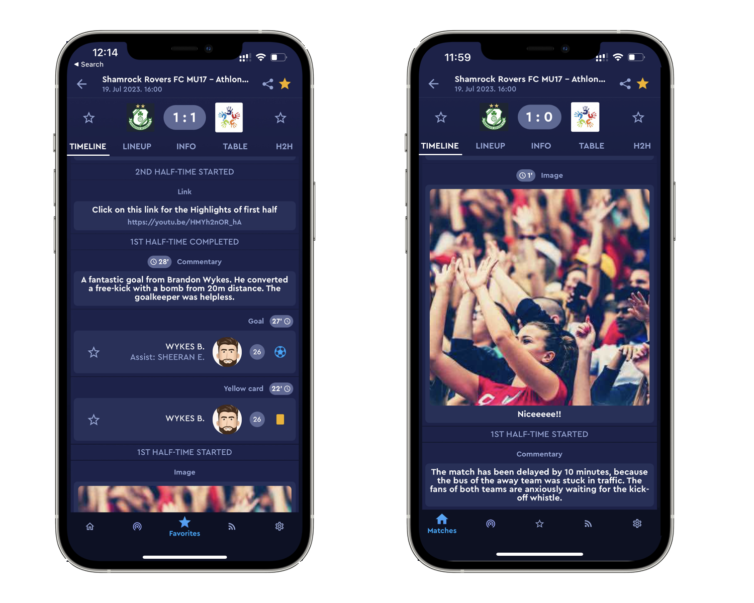 - Contextual football-specific sounds/alerts upon receiving a match event notification