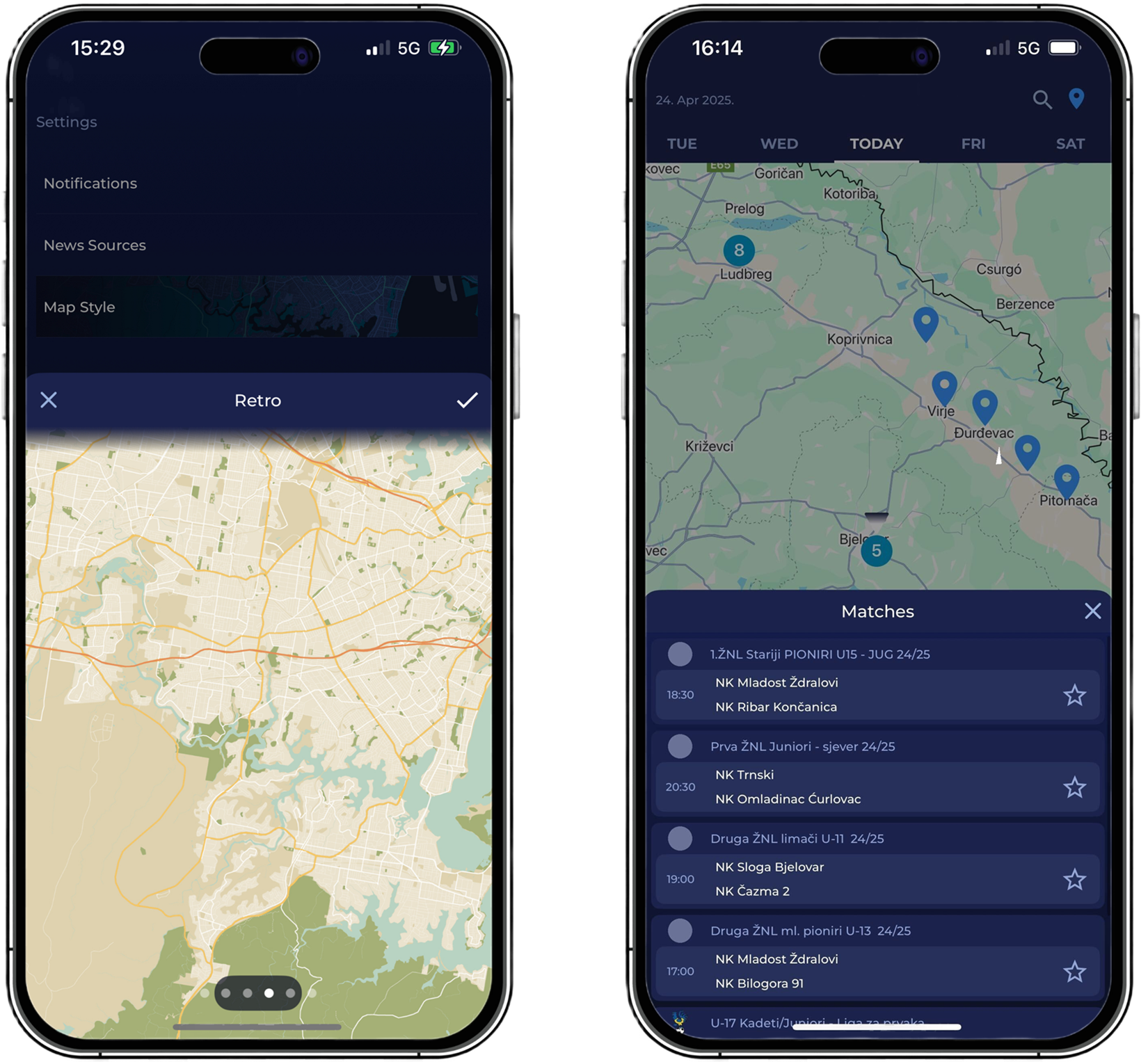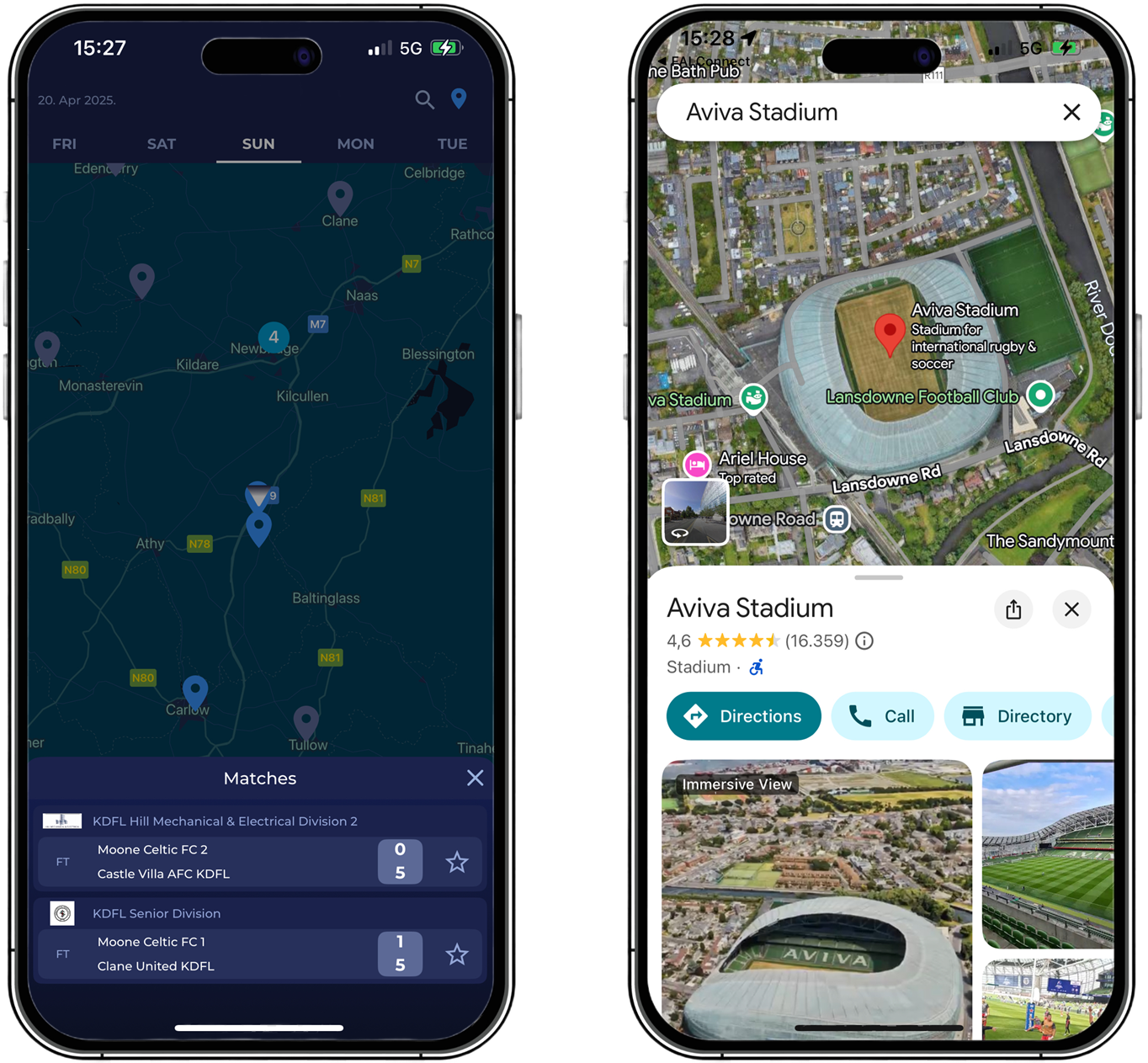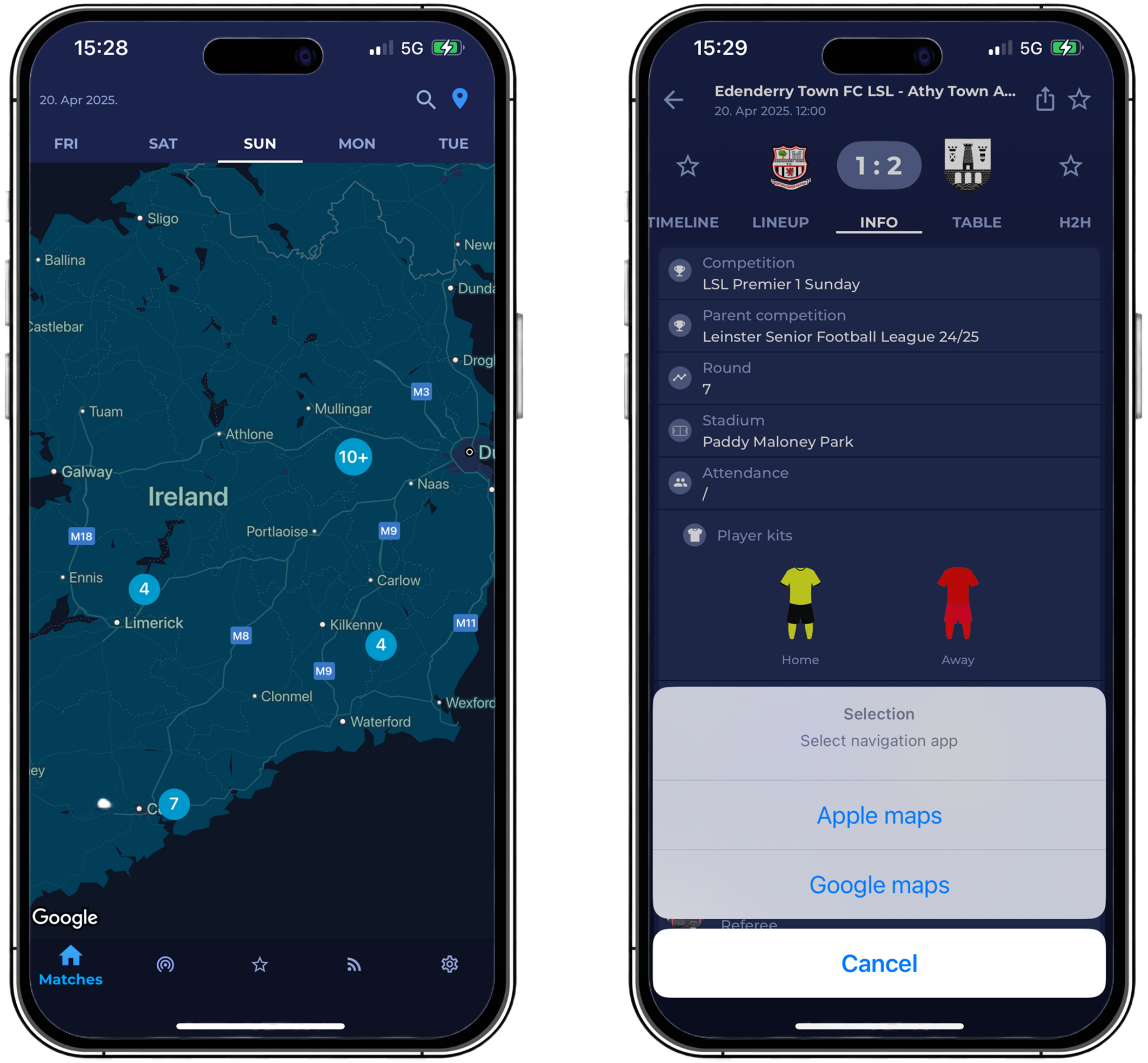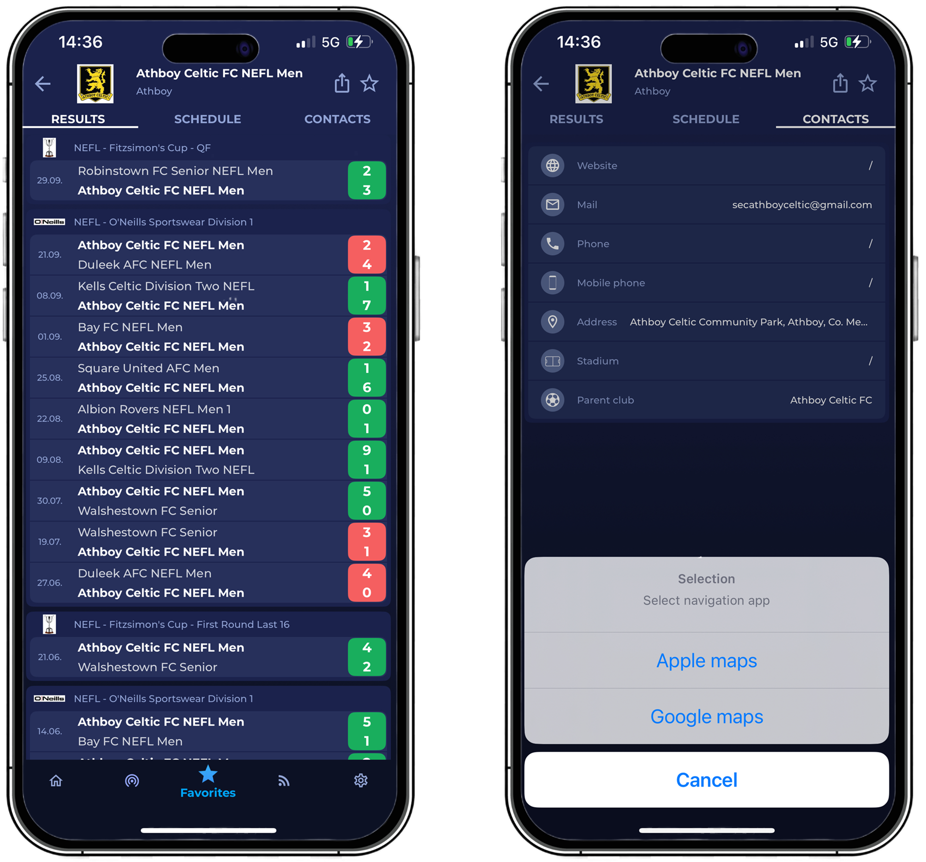 - Deep-link to Map Apps installed on the device (such as Google Maps, Apple Maps, or Yandex) from Map View, Match Info Tab, Club Contacts Tab