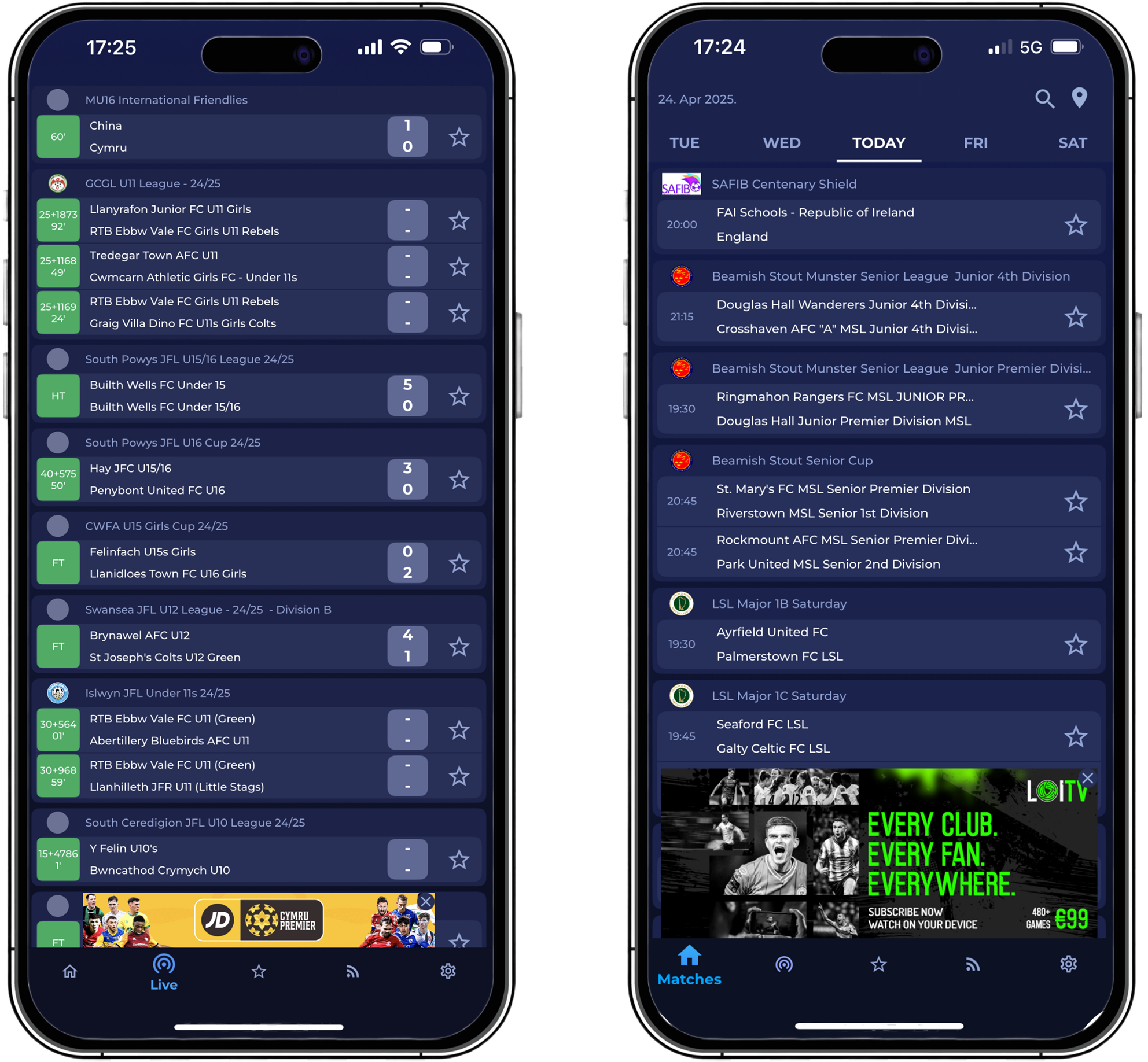 - Live Match Commentaries, Images and Links to external sites and apps (e.g. match highlights)