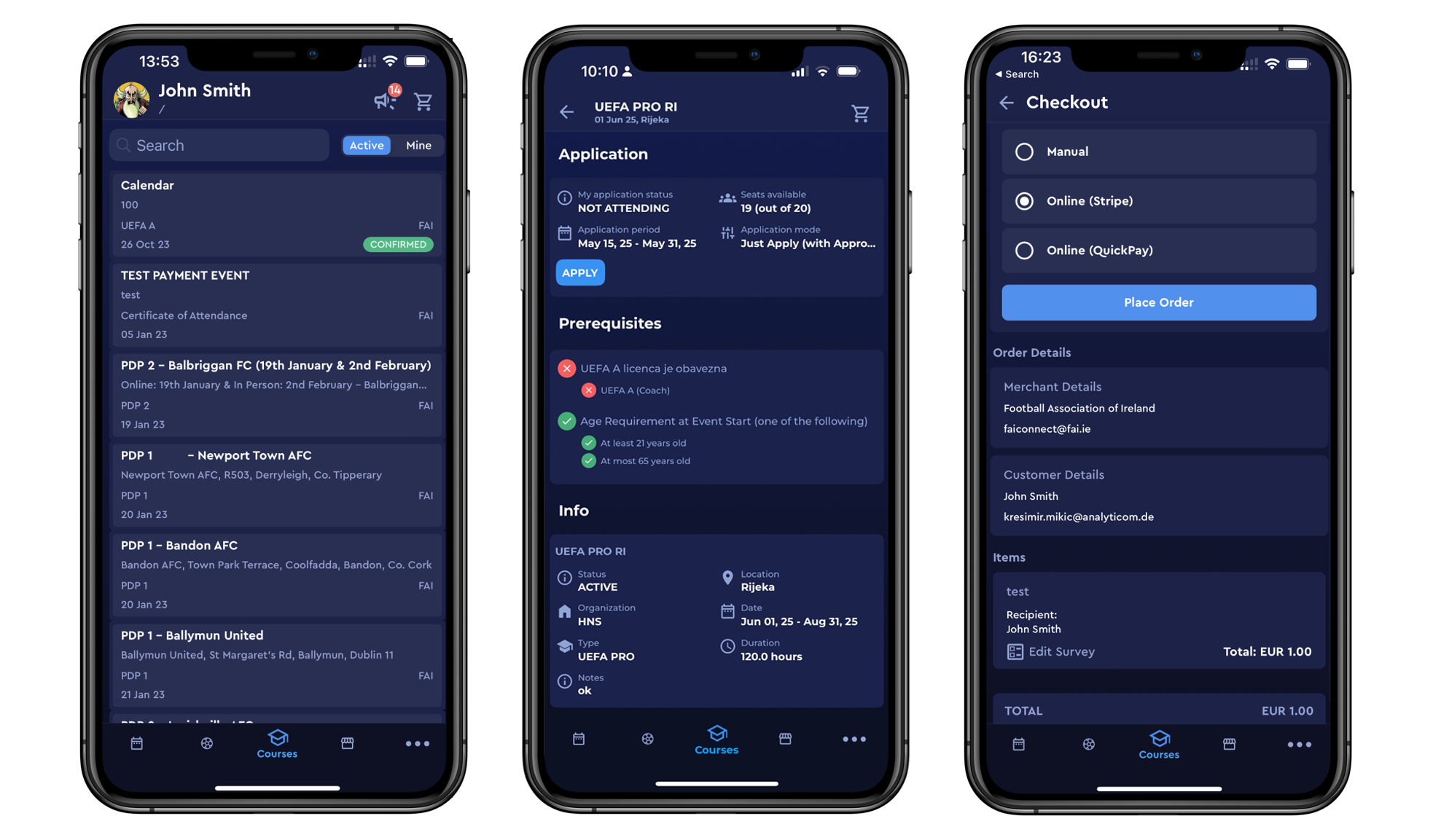 License is granted after the participant has successfully passed a specific event. For example, if a coach has successfully completed the UEFA A Seminar, upon successful completion, that Coach will automatically receive the UEFA A Coaching license for a certain pre-defined period of validity. That license will be visible on the person’s coach profile.
